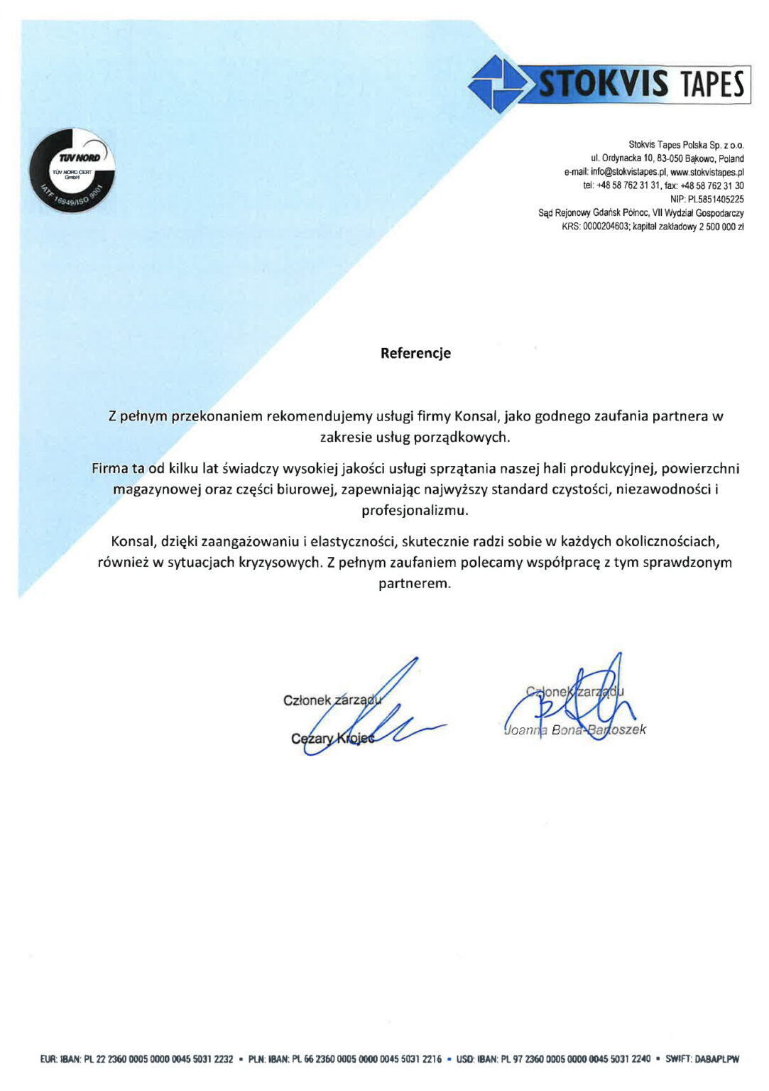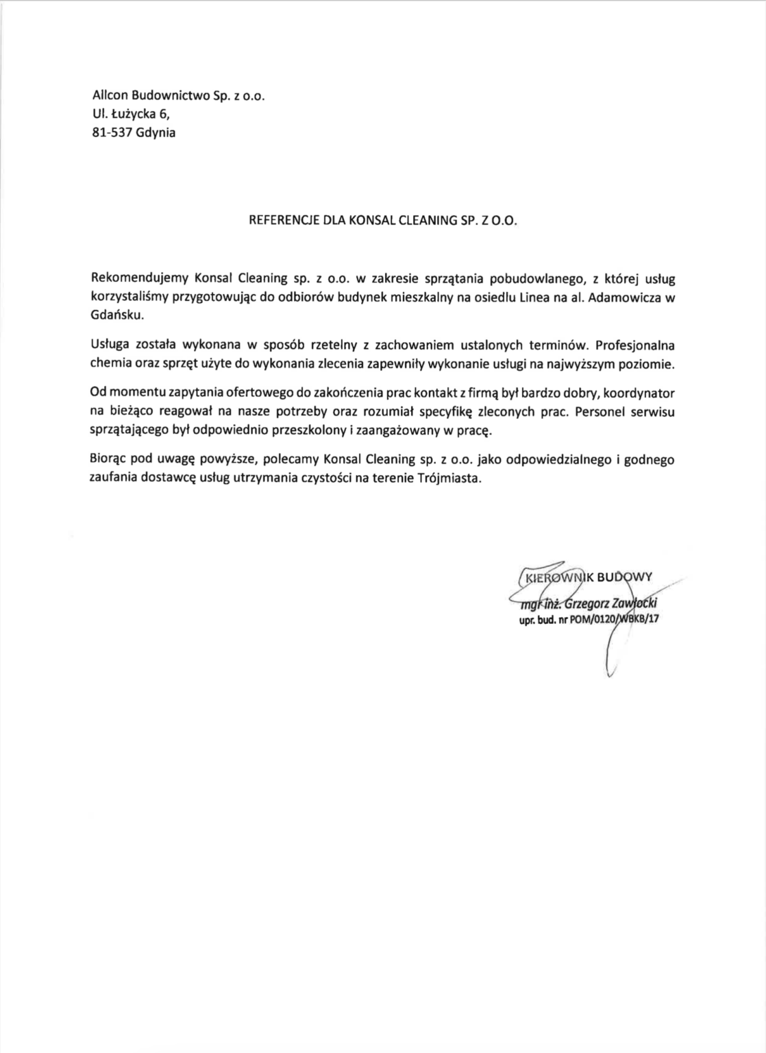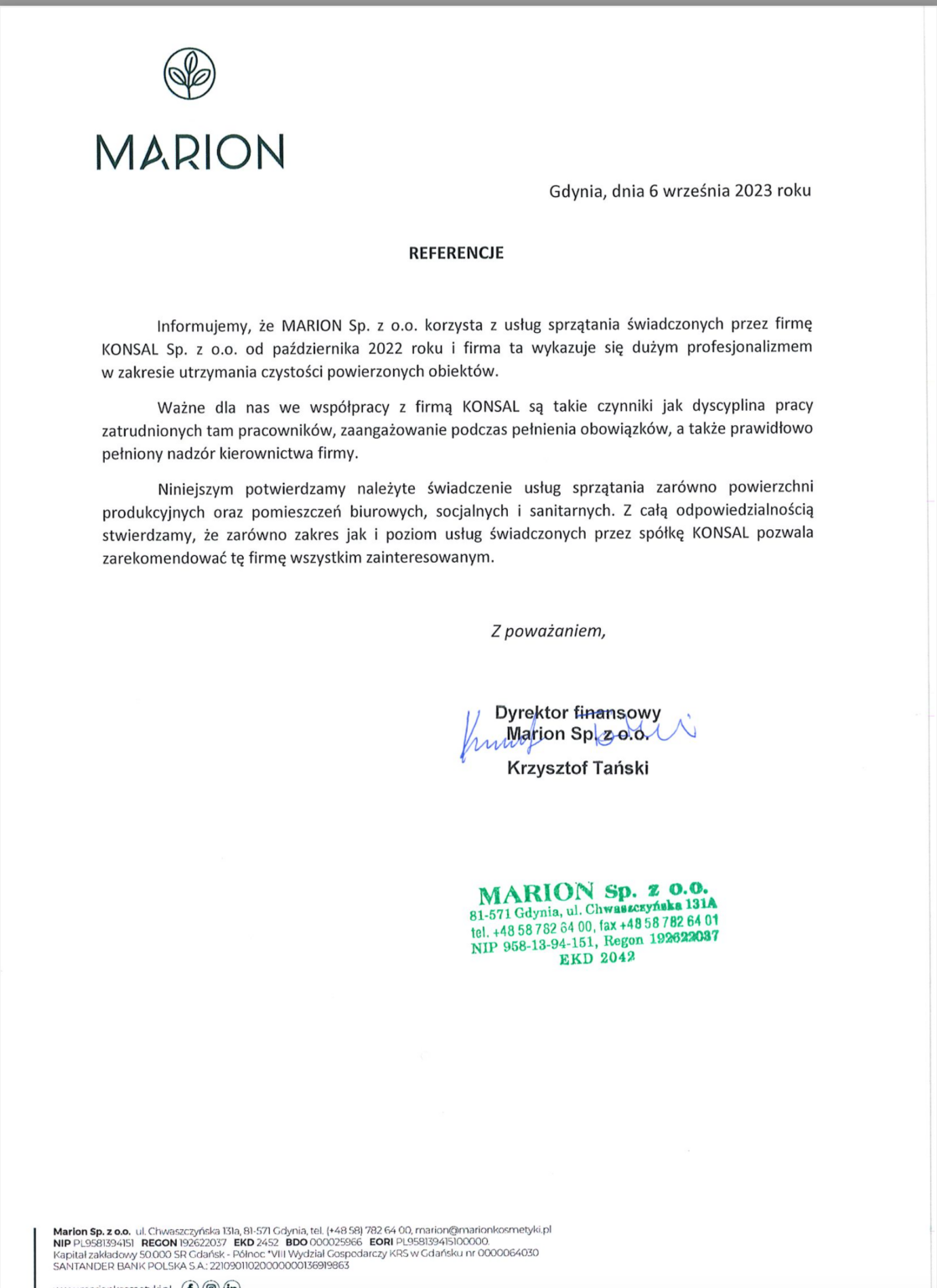 Referencje od naszych Klientów - KONSAL Cleaning